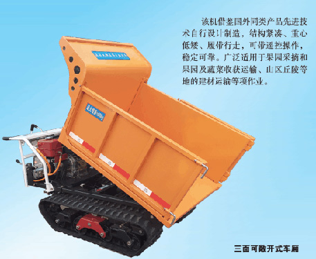 該機(jī)借鑒國(guó)外同類(lèi)產(chǎn)品先進(jìn)技術(shù)自行設(shè)計(jì)制造,結(jié)構(gòu)緊湊,重心低矮、履帶行走,可帶遙控操作,穩(wěn)定可靠。廣泛適用于果園采摘和果園及蔬菜收獲運(yùn)輸、山區(qū)丘陵等地的建材運(yùn)輸?shù)软?xiàng)作業(yè)。